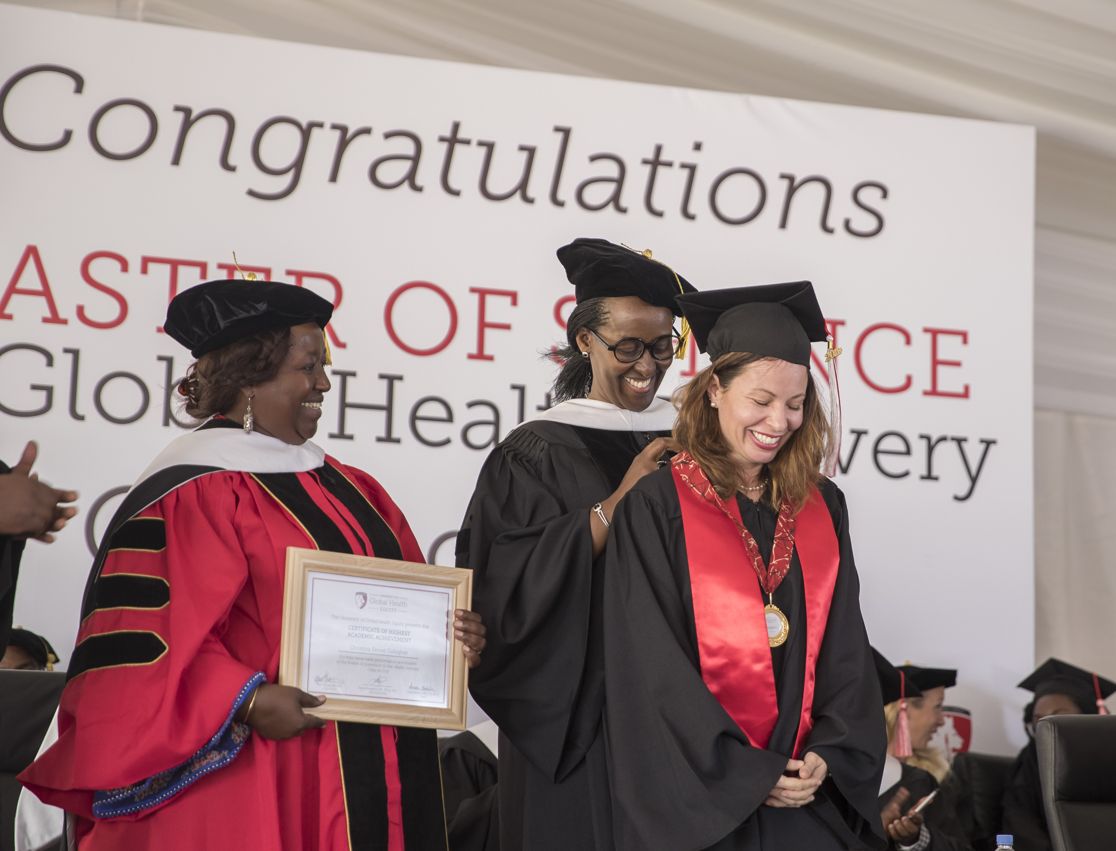 The event was highlighted by keynote speaker Dr. Jim Yong Kim, Co-founder of Partners In Health and Former President of the World Bank, along with Honorable Minister of Health Dr. Diane Gashumba, who served as the Guest of Honor for the ceremony. Dr. Paul Farmer, Chancellor of UGHE and Co-founder and Chief Strategist of Partners In Health, and Dr. Agnes Binagwaho, Vice Chancellor of UGHE, also offered remarks to the graduating students.