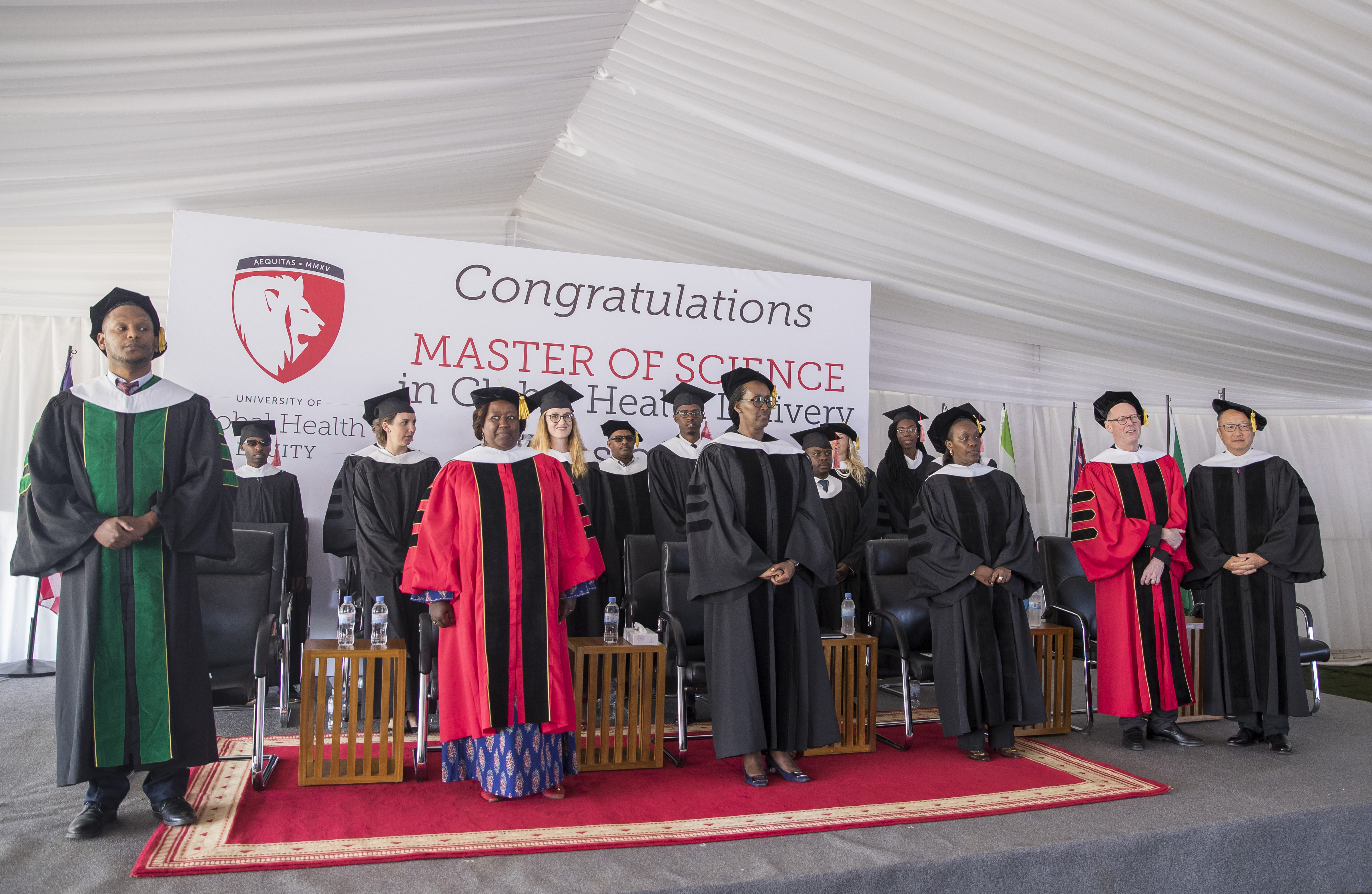 On August 11, 2019, UGHE graduated 46 students from the Master of Science in Global Health Delivery Class of 2019 at its campus in Butaro, Rwanda. The commencement ceremony was attended by over 300 guests and dignitaries, including Her Excellency, the First Lady of the Republic of Rwanda, Mrs. Jeannette Kagame, local and national government officials, leadership from Partners In Health and Inshuti Mu Buzima, UGHE staff, alumni, friends and family of the graduates, thought partners from leading academic institutions, and donors and champions of the University.